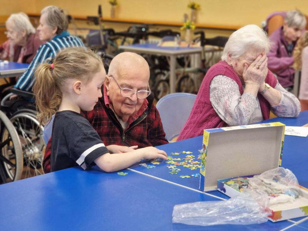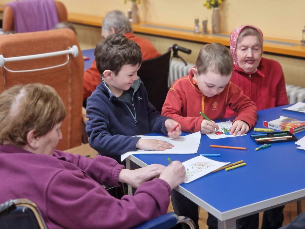 V rámci mezigenerační spolupráce se již tradičně třída Dráčků vydala na výlet za klinety Domova pro seniory. Společné dopoledne vyplnilo seznamování, povídání, hraní karetních her, kreslení, skládání, házení s míči i společné zpívání. Děti roznášely radost už jen svou přítomností, ale jejich bezprostřednost a dobrosrdečnost vykouzlila nejeden úsměv na tváři. ❤️